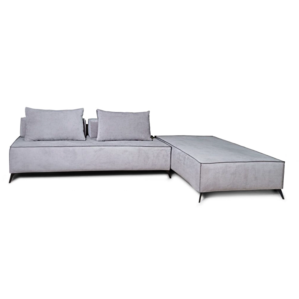 Καναπές γωνία με δυνατότητα διαμόρφωσης σε 3θέσιο + 2θέσιο σαλόνι και μετατροπή σε κρεβάτι αφαιρώντας τις αποσπόμενες πλάτες. Διαθέτει μεταλλικά πόδια και αδιάβροχο ύφασμα πολλών αποχρώσεων.