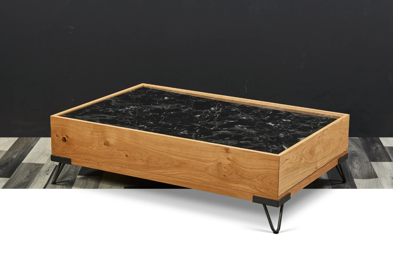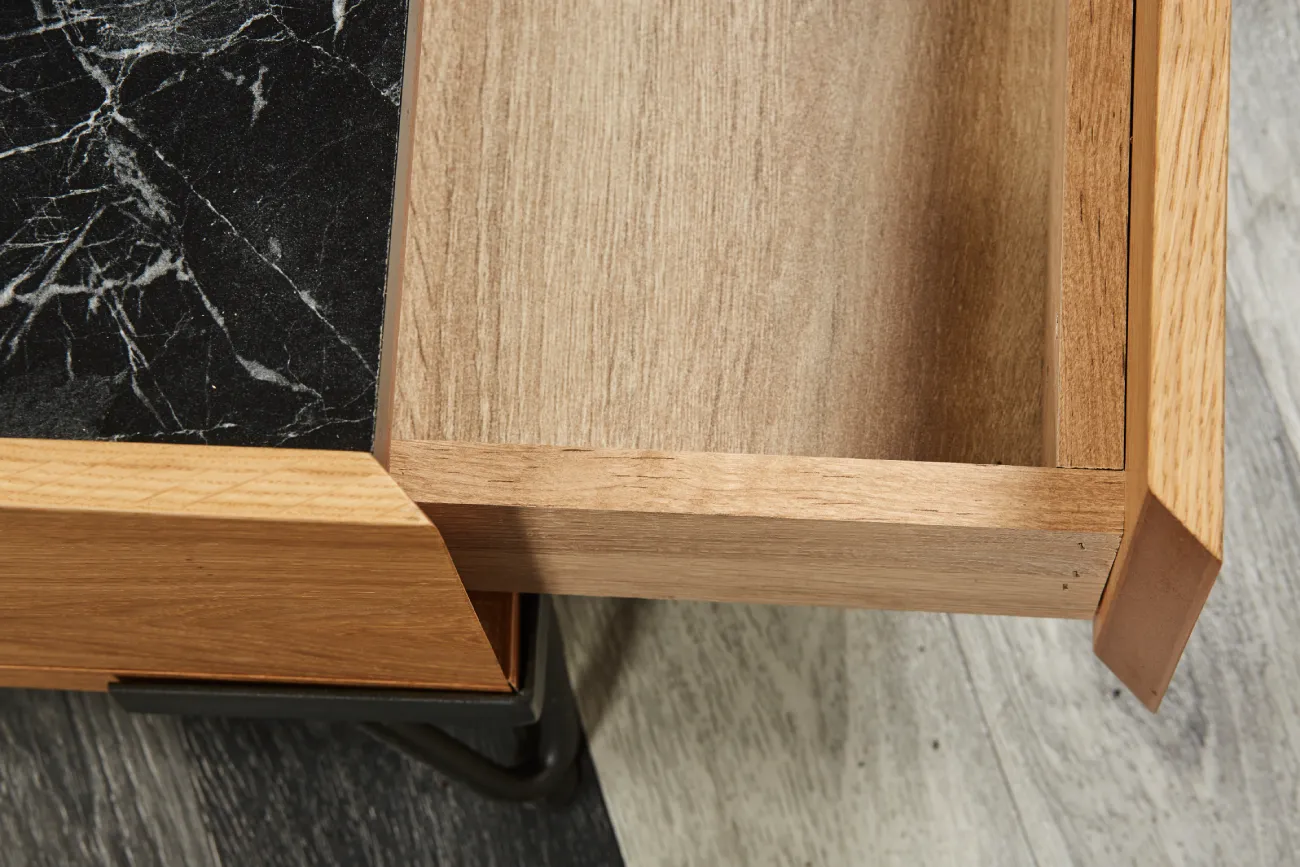 Τραπεζάκι σαλονιού με εφέ μάρμαρο και άνοιγμα στο πλάι